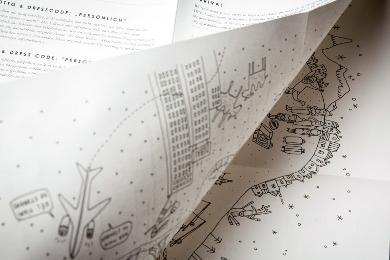 I had the honor not just to create the complete design for printed materials. I designed the floristry, decorations for the dinner table, presents for children, interior of the location and the fairytale altar beneath two old willows by the lake.
