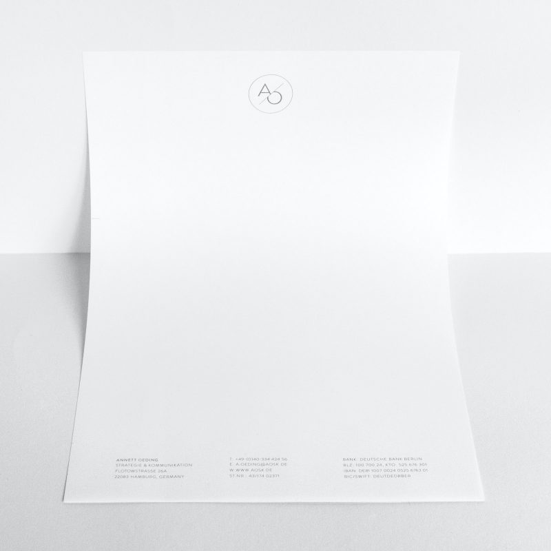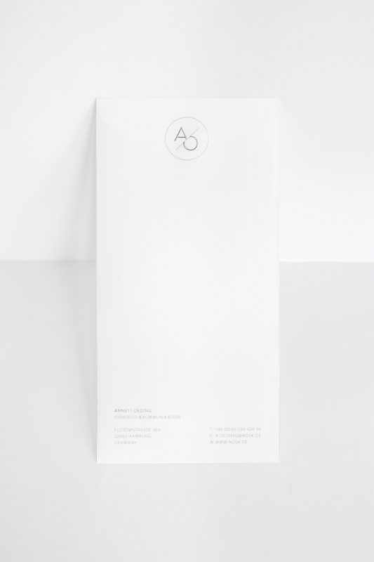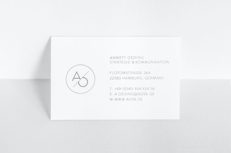 A pure design and clear-cut lines, ennobled with a steel engraving and silver on textured paper. Logo, business cards, greeting cards, envelopes, stamps, and a website were designed to suit the owner of AOSK.