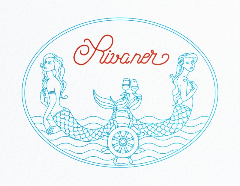 Rivaner is a light and delicious wine from Franconia. It is so good that it is probably most likely to be enjoyed by two mermaids by the river. It will indeed let your fantasy grow just as it did with mine. Maybe the reason why I designed and illustrated this wine label.